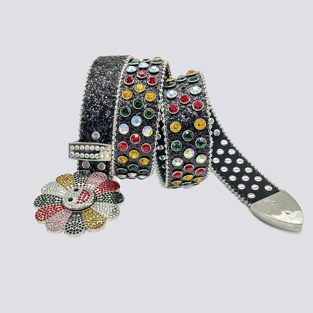 NEW STYLE Rhinestone Belt For Women With Rotating Sunflower Buckle